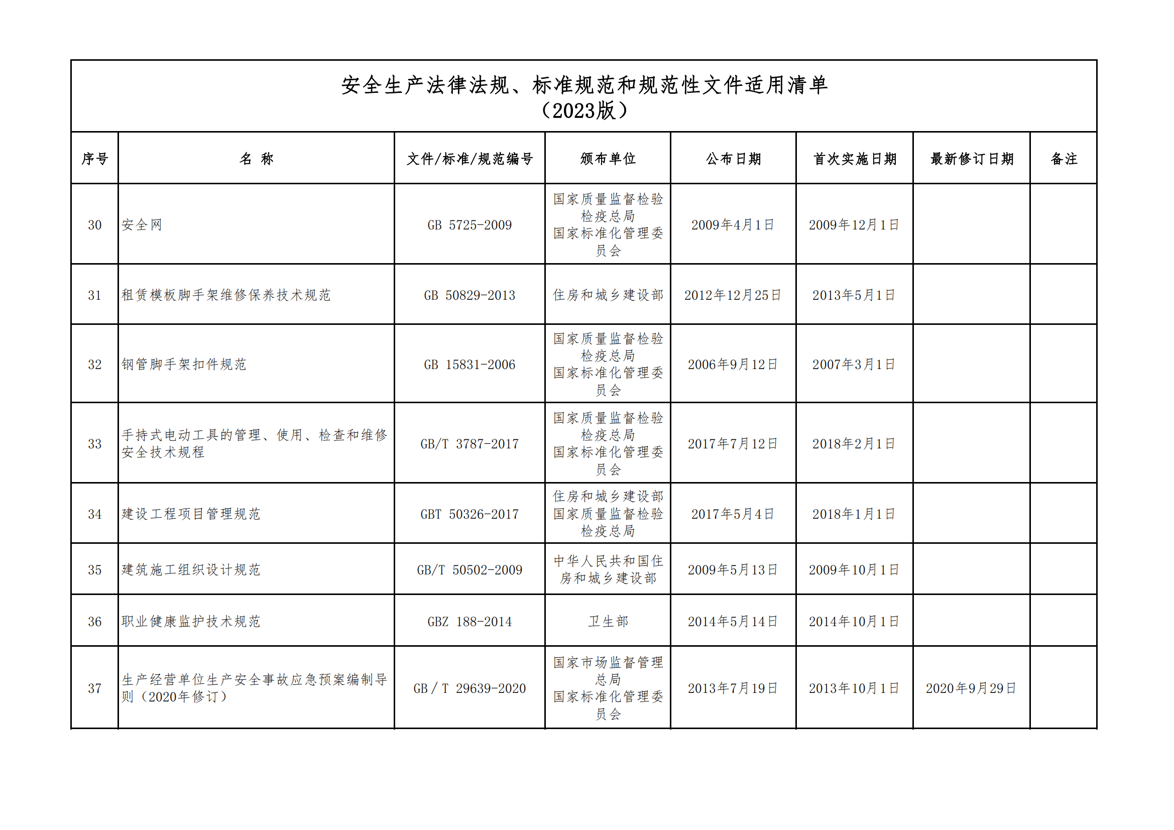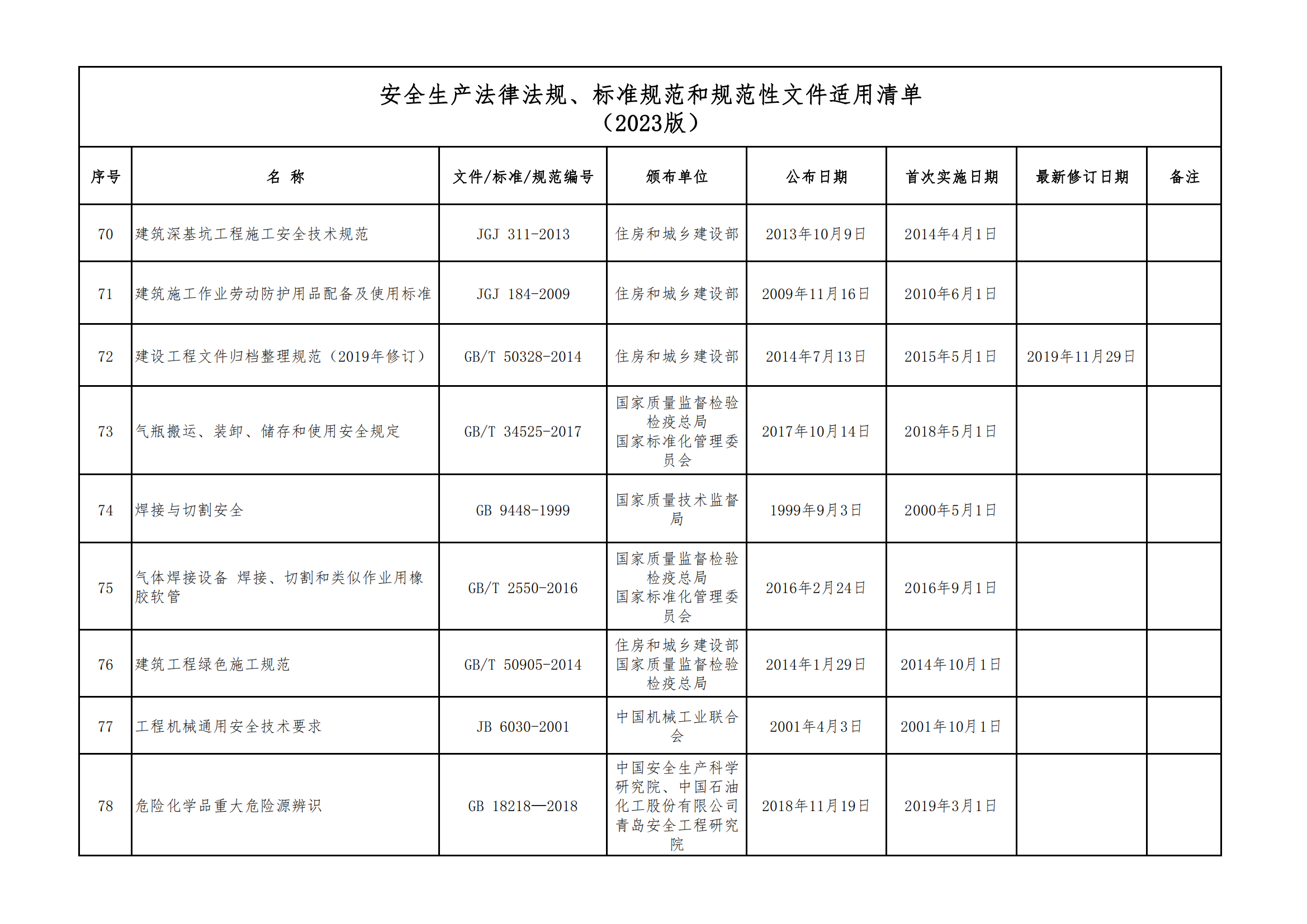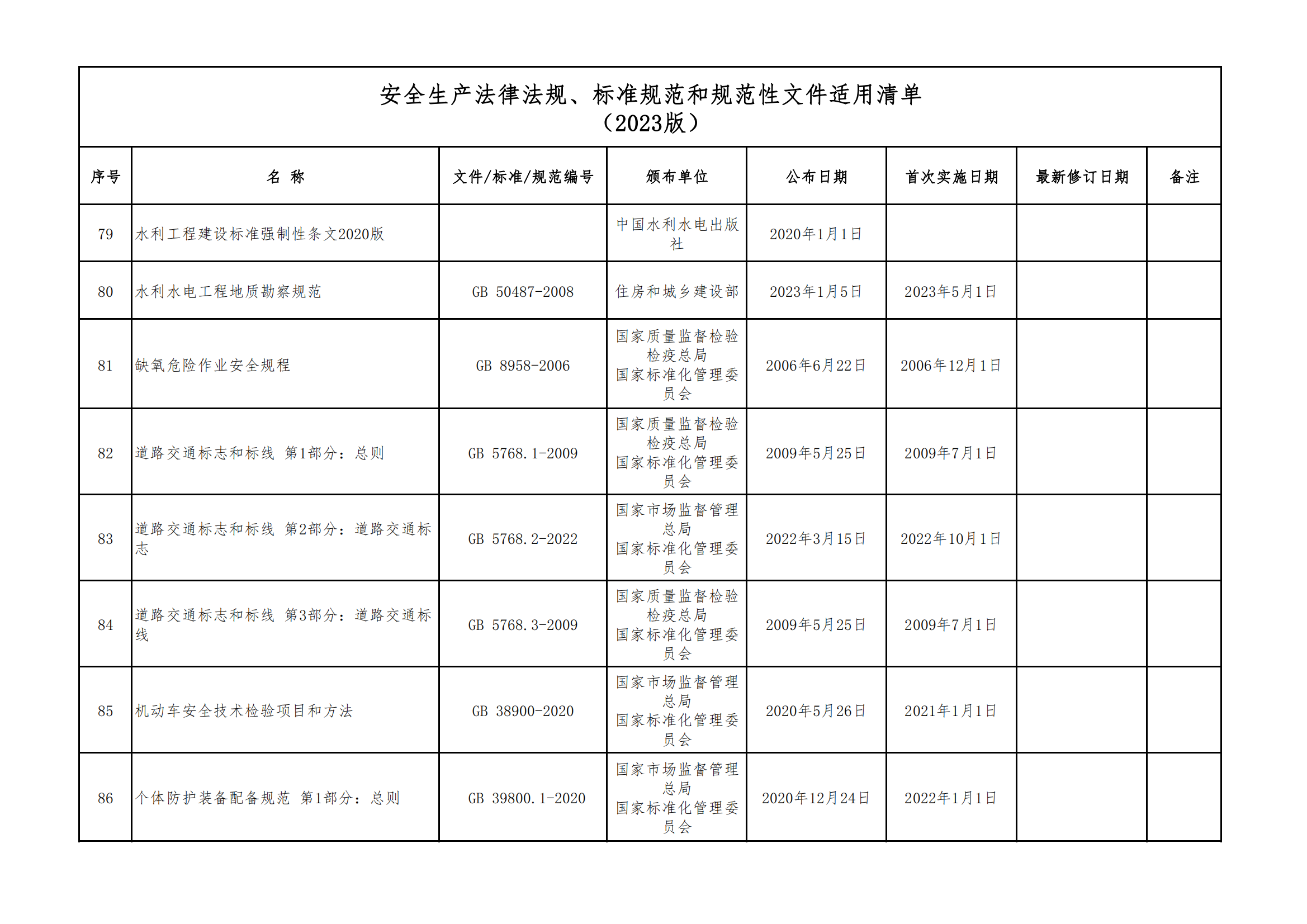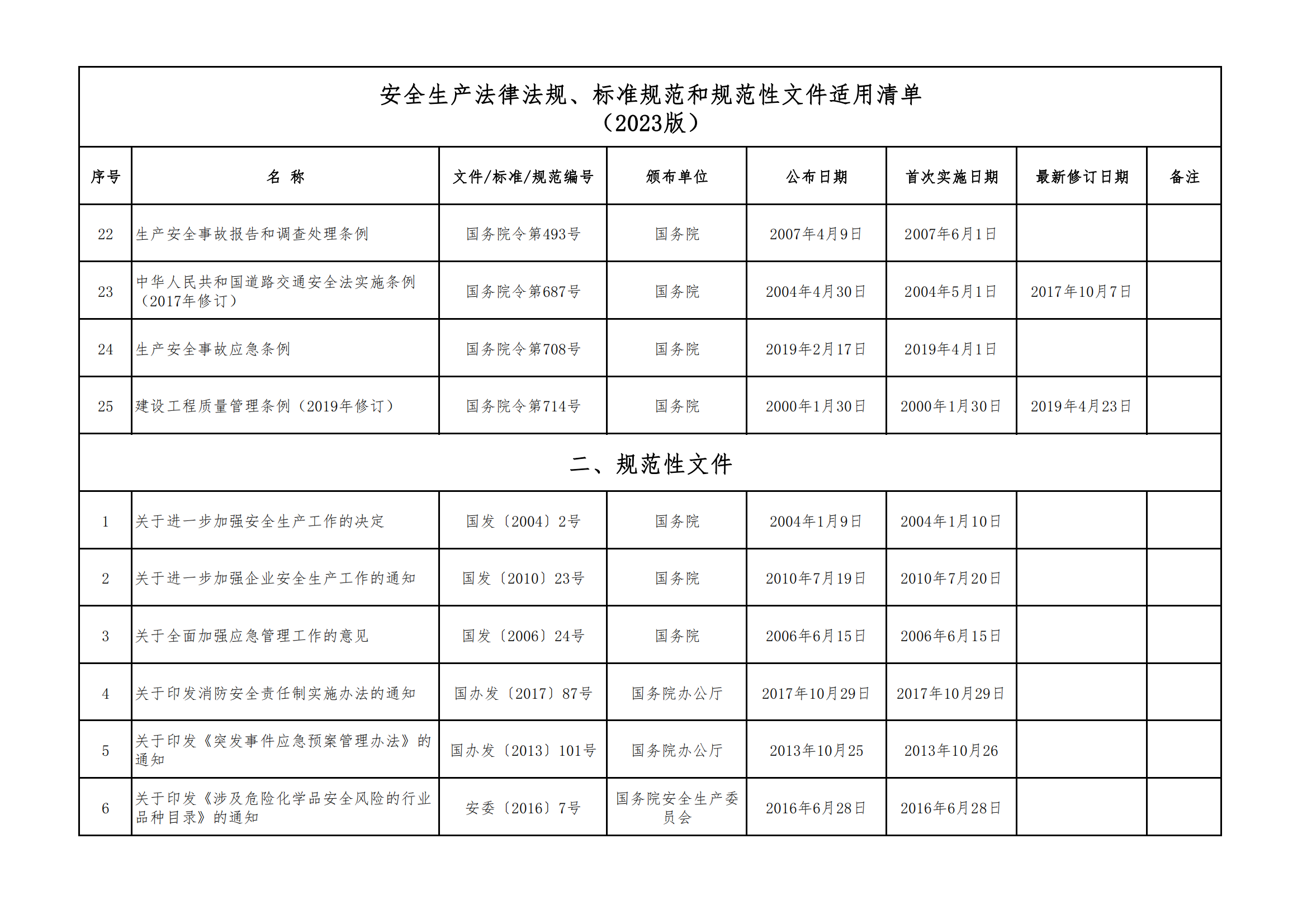 安全生產(chǎn)法律法規(guī)、標(biāo)準(zhǔn)規(guī)范和規(guī)范性文件適用清單