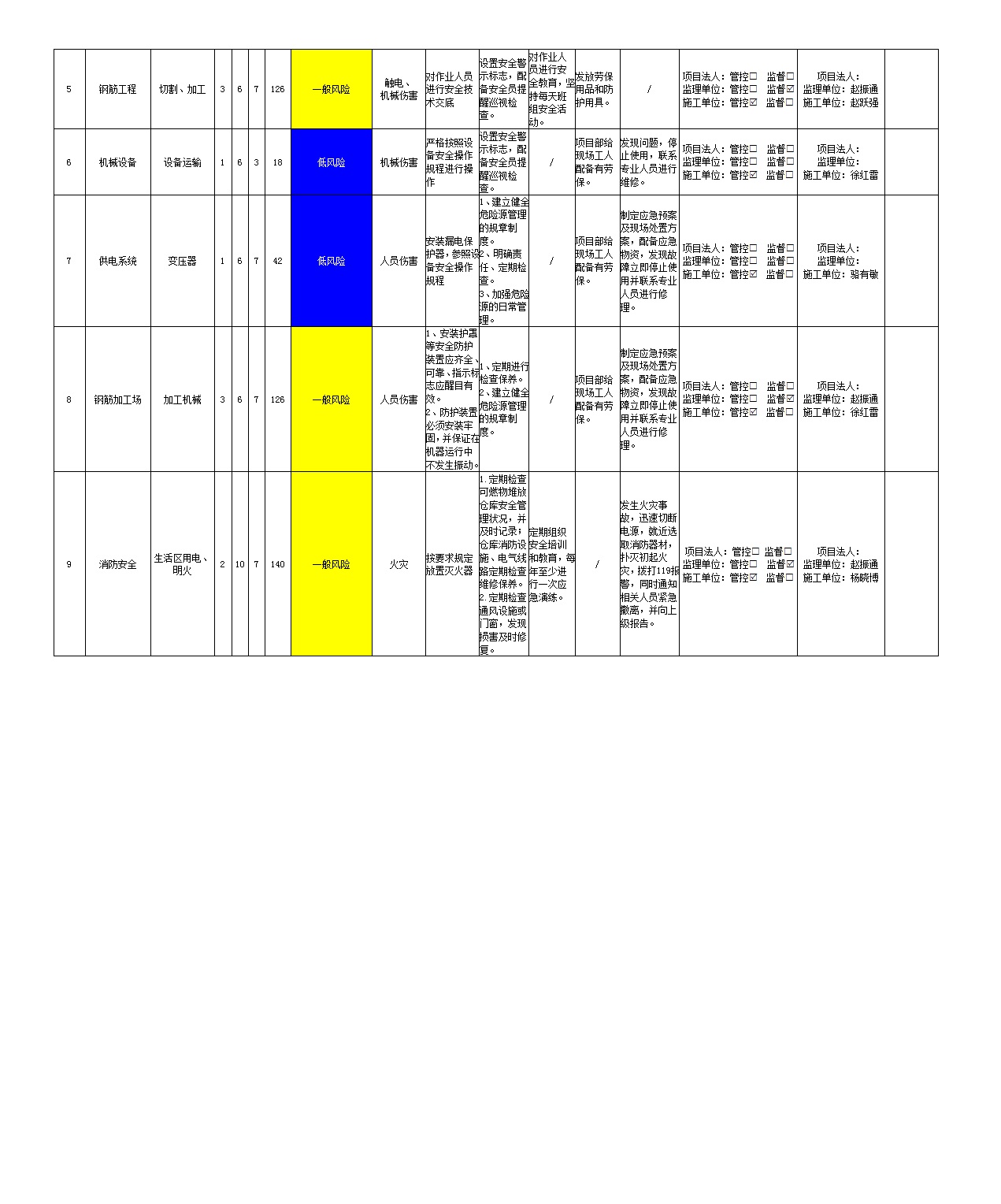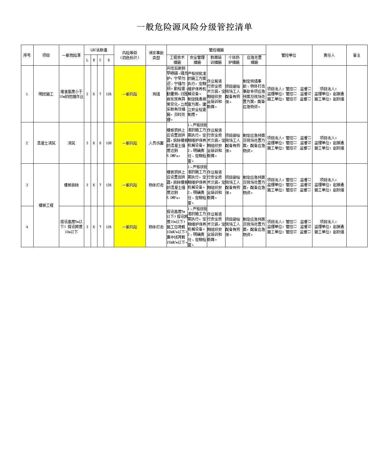 2024年二季度在建項目安全風險分級管控清單(小浪底南岸灌區(qū)工程施工7標)